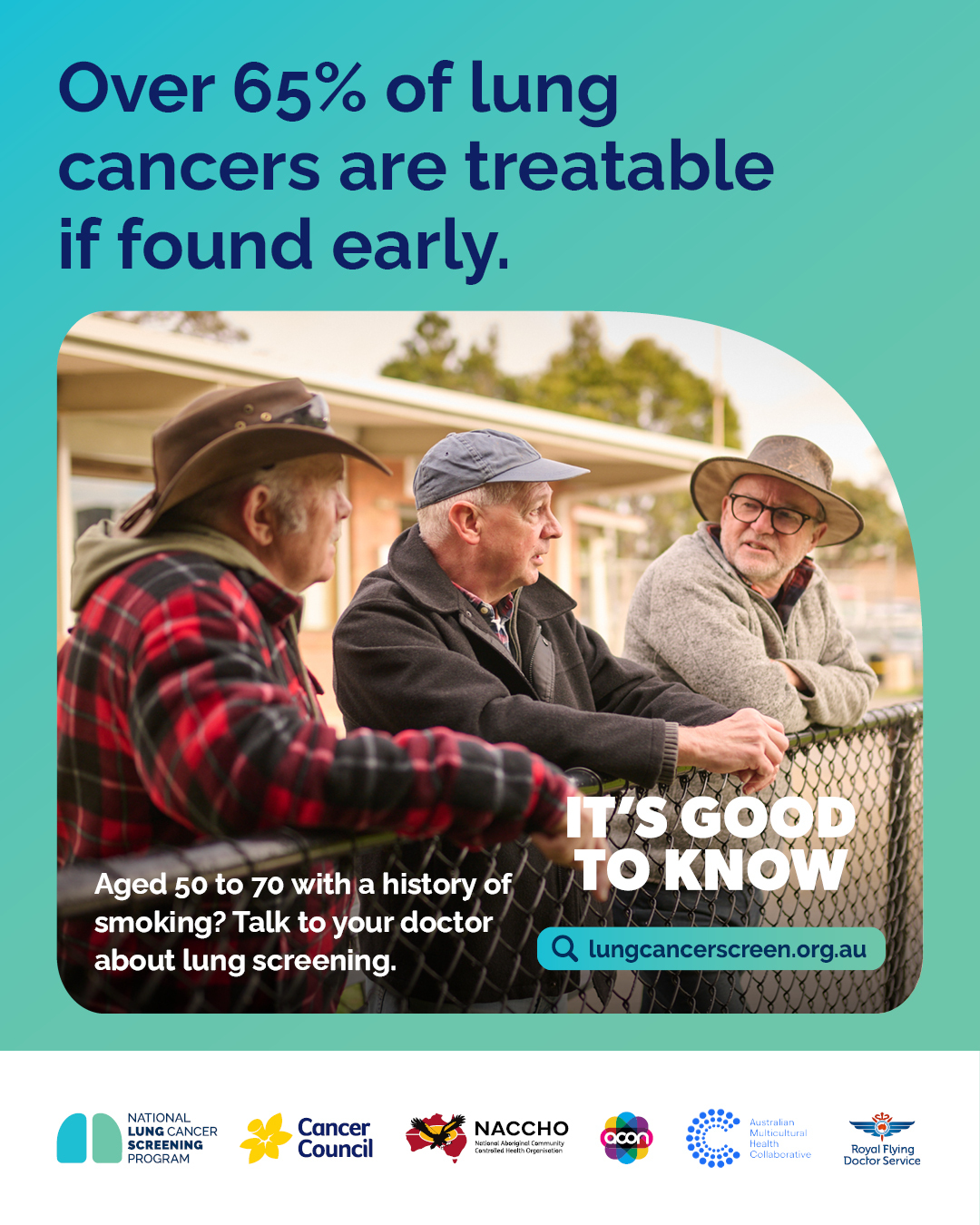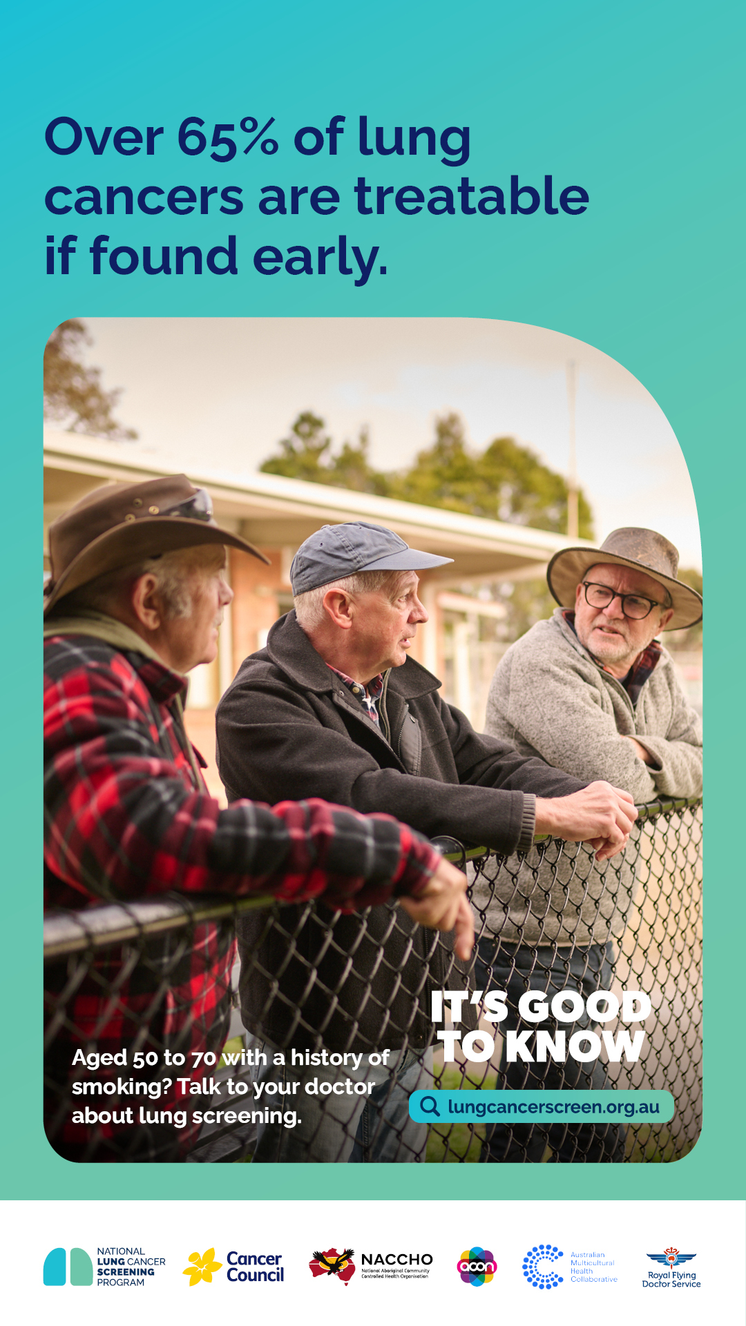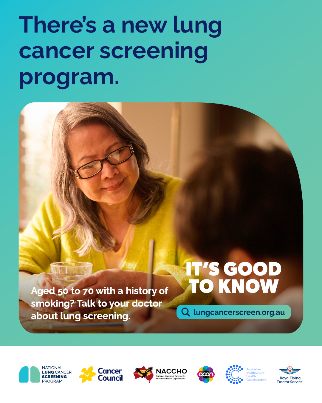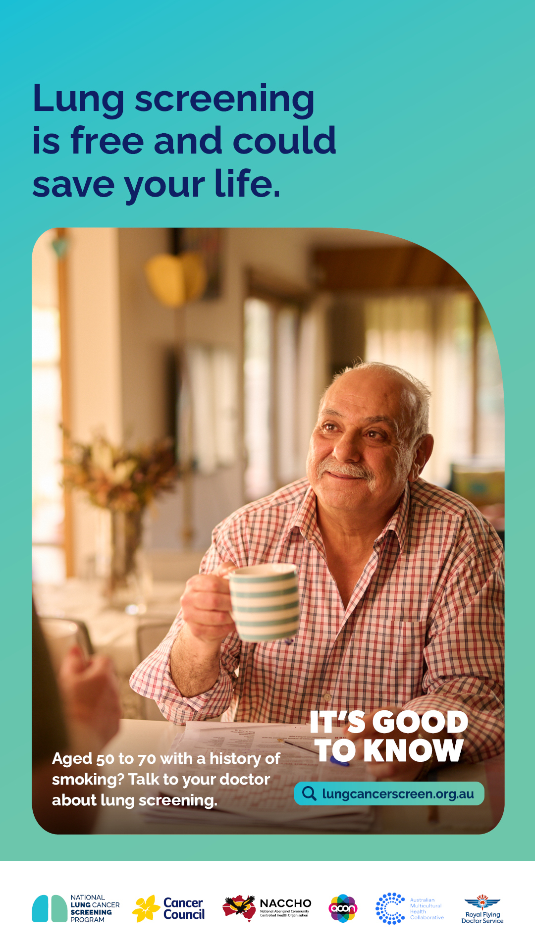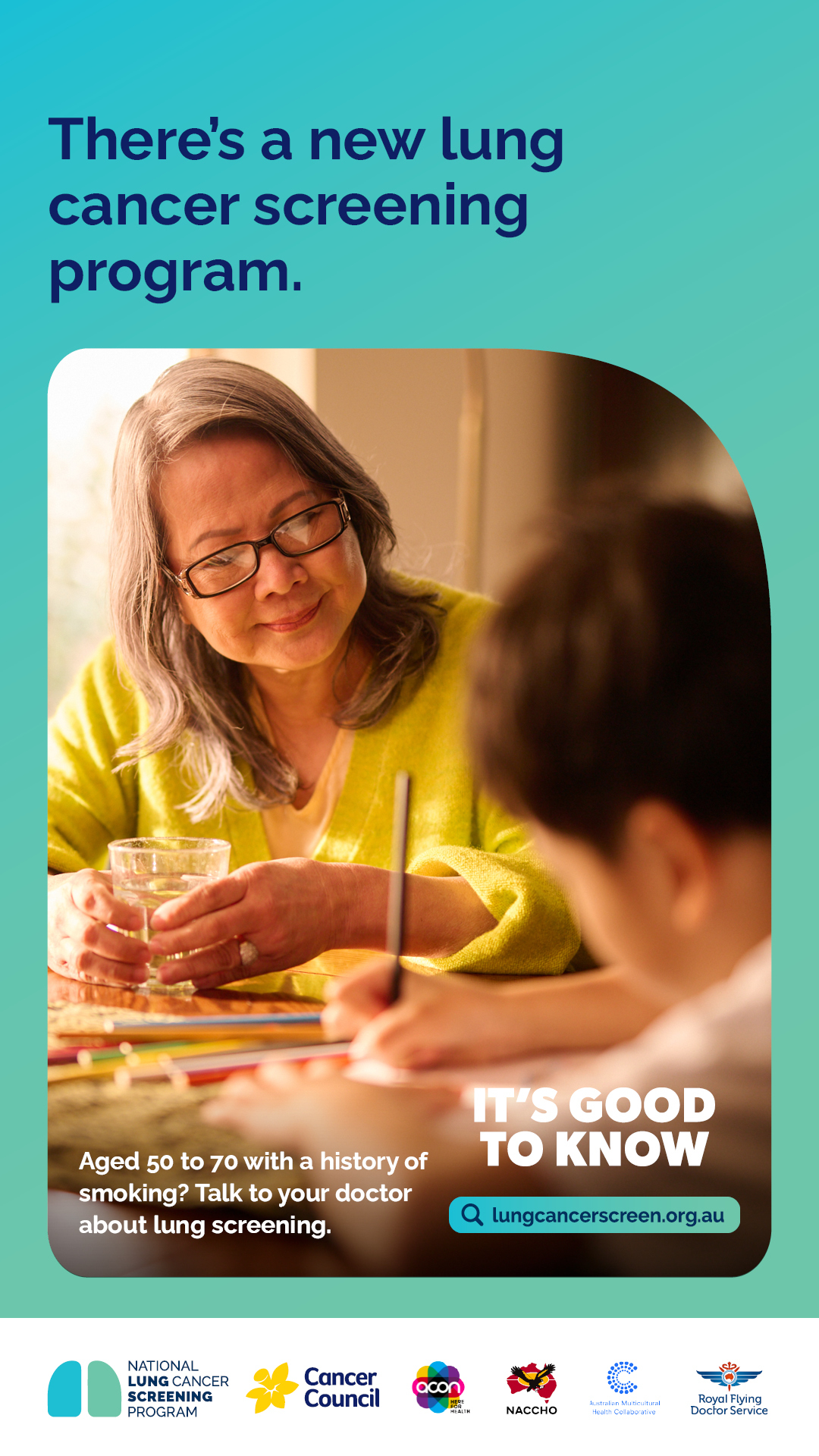 Lung cancer is Australia’s leading cause of cancer-related death. This screening program offers a new opportunity to detect lung cancer early, when it’s more treatable and save lives. But to do this, we need to make sure that everyone eligible knows about this program and is supported to participate.