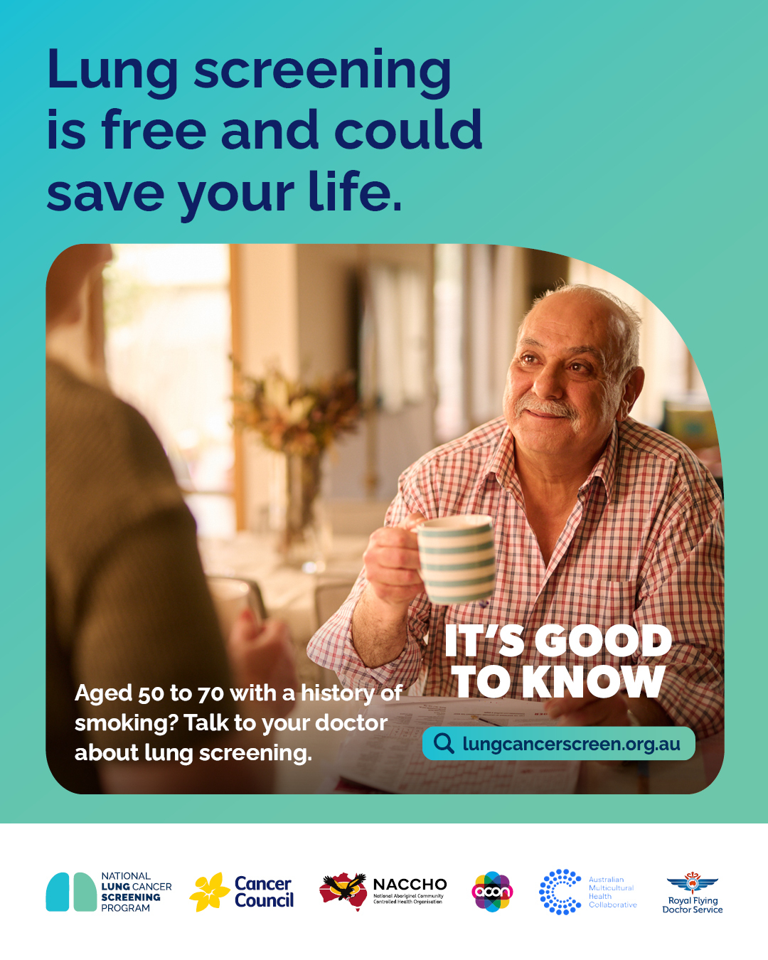 The campaign supports the launch of the National Lung Cancer Screening Program, aiming to increase awareness and participation among eligible Australians.