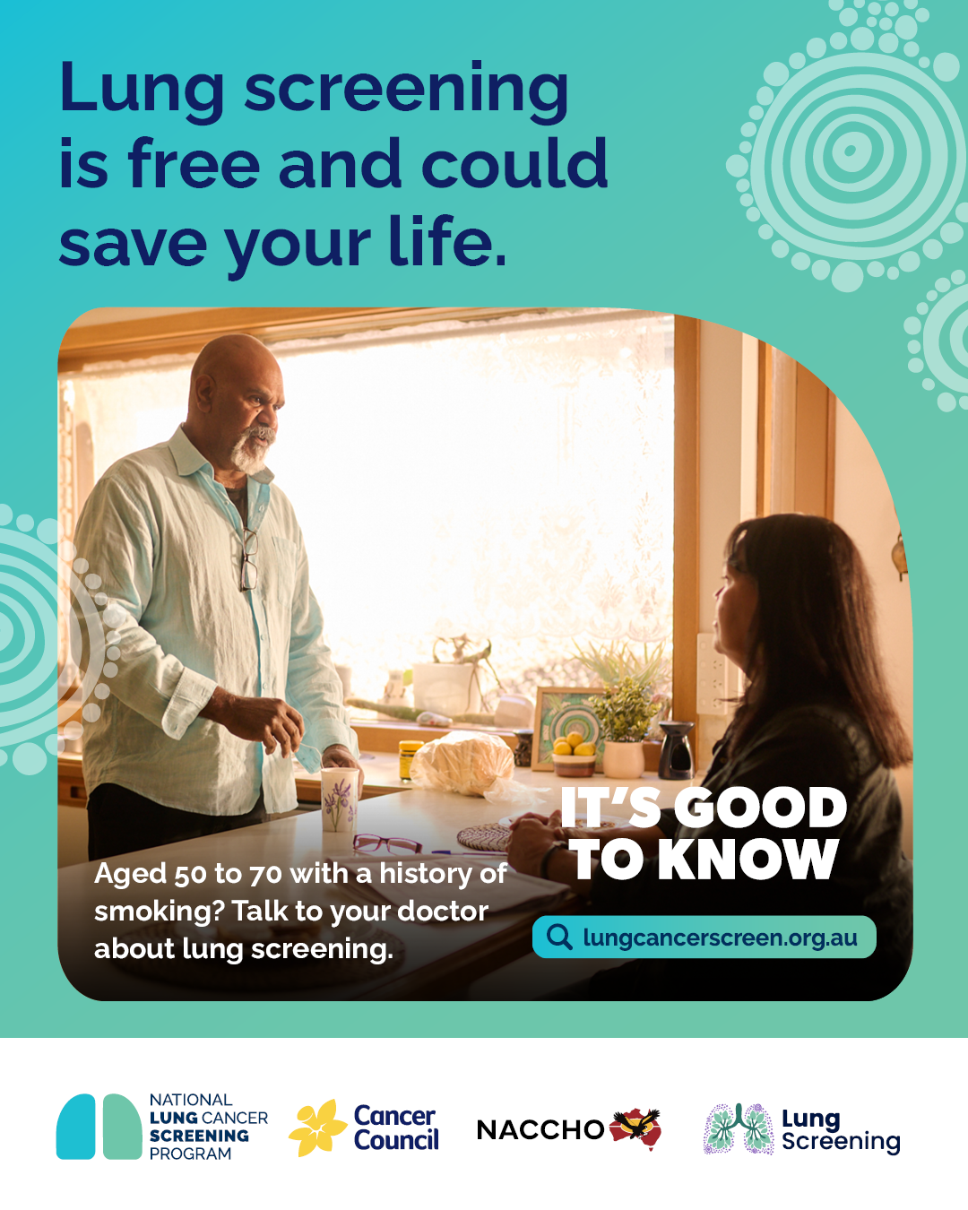 - If you're aged 50 to 70 and have a smoking history, have a yarn with your doctor, nurse or health worker about lung screening.
